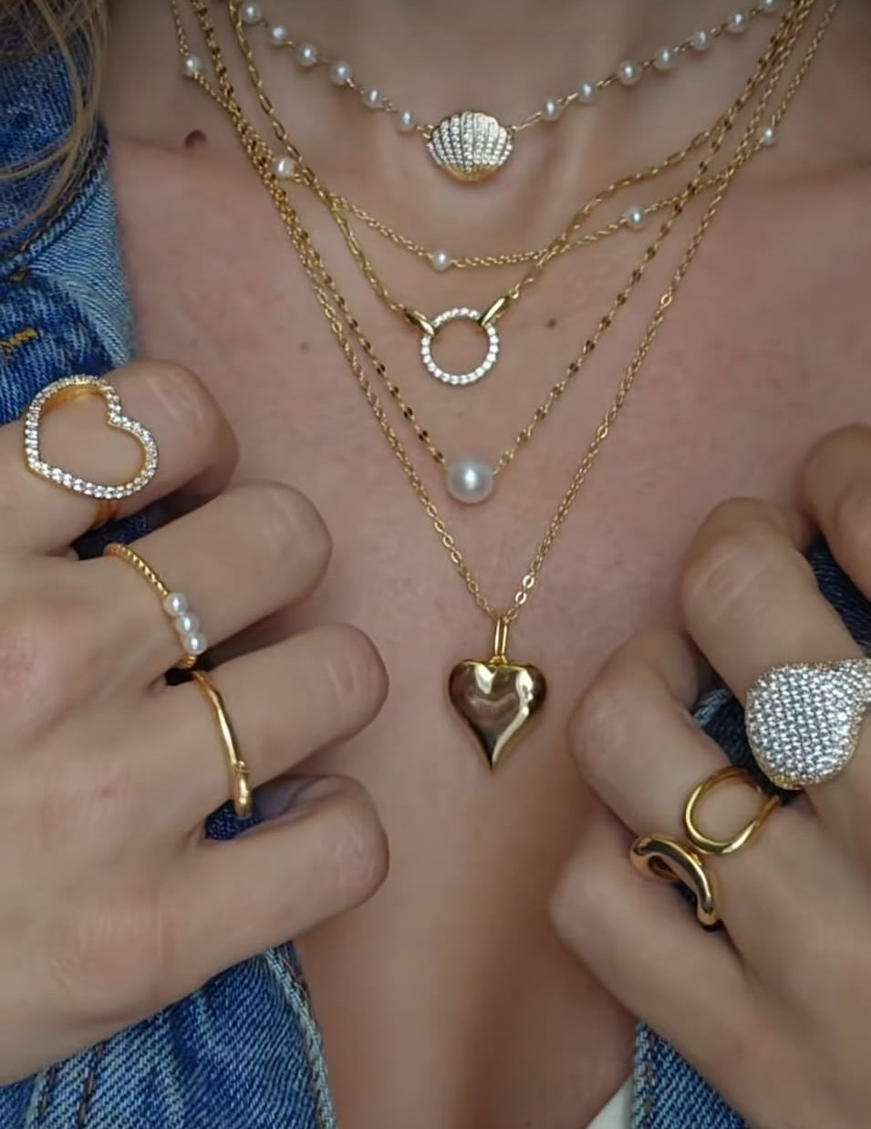 CZ Shell & Pearls Necklace – 18k Gold Plated | Shapes Collection