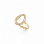 The Diamanti Ring from our SHAPE Collection features a structured, angular design that captures the light with every movement. Crafted from 925 sterling silver and finished with 18k gold plating, it's adorned with 5A cubic zirconia stones that add a refined sparkle to its bold shape.