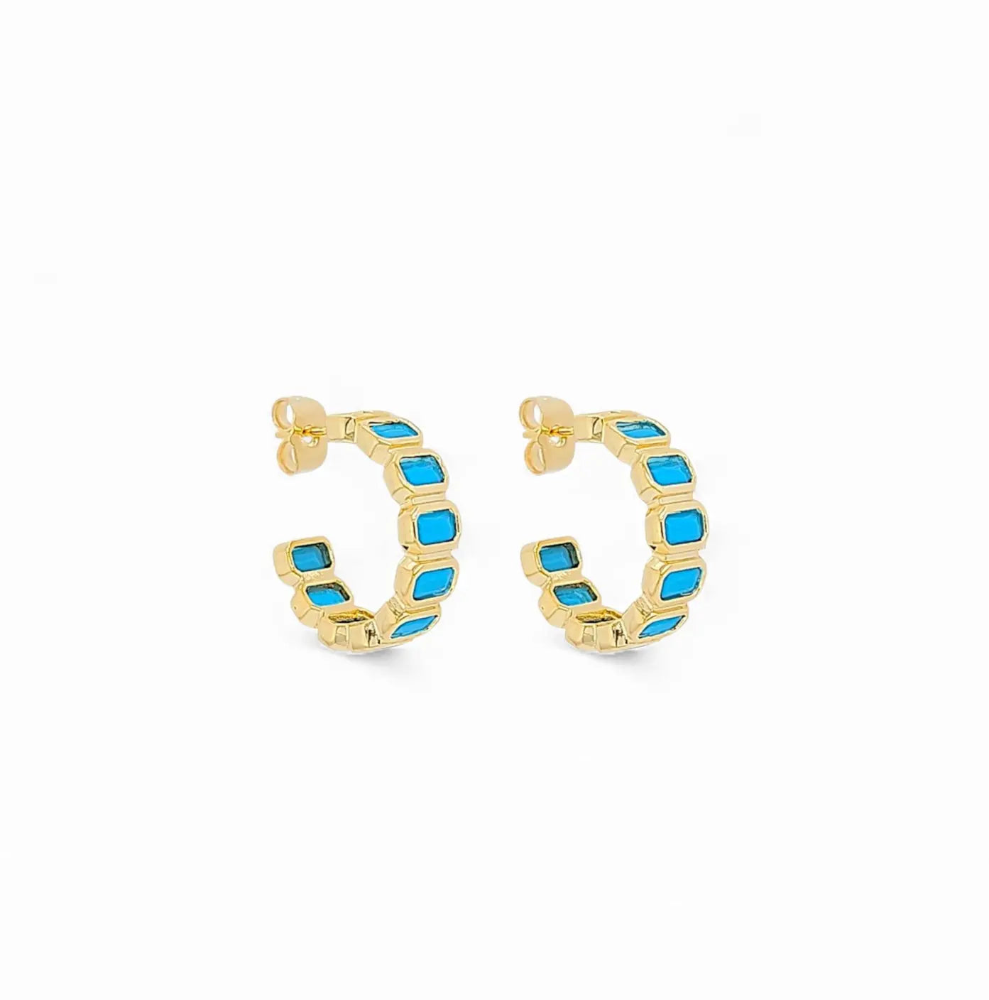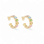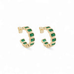 The Hoop Riviera 0.9'' earrings are designed to bring a touch of vibrancy and elegance to your everyday look. Featuring emerald-cut 5A cubic zirconia stones, each pair delivers a striking pop of color framed in a sleek 18K gold-plated setting. Perfectly sized for a balanced statement—wear them solo or stack them with your favorite pieces. Available in six vivid color options.