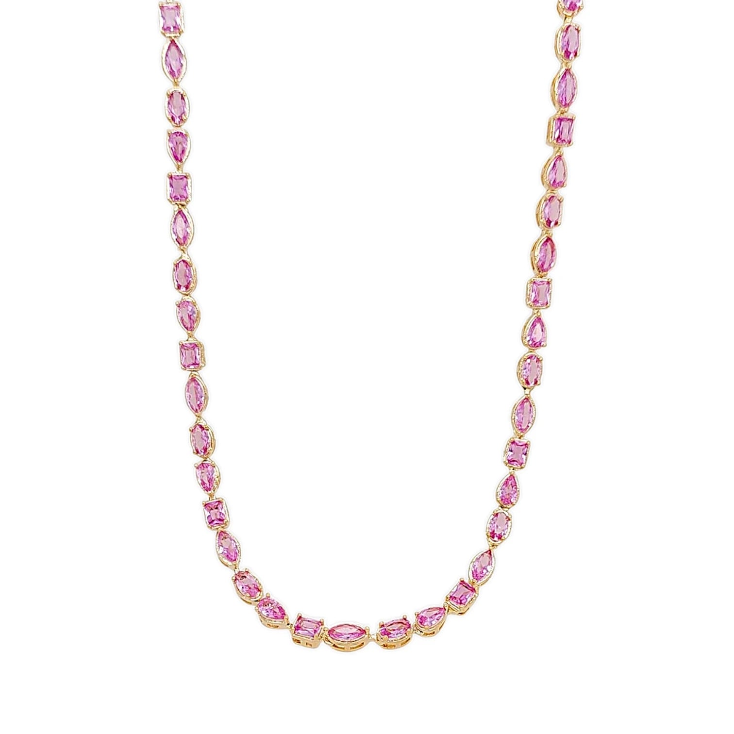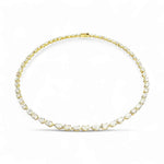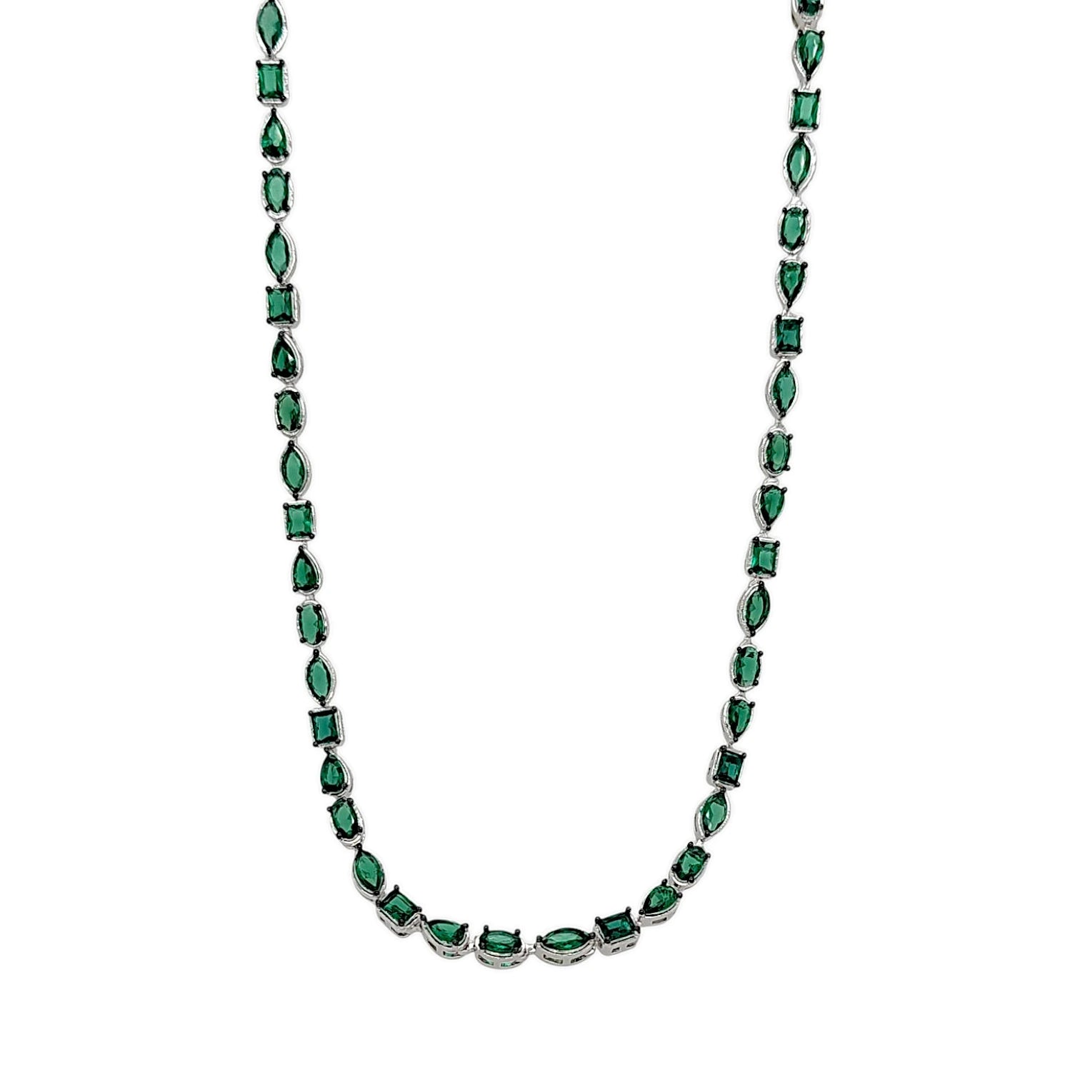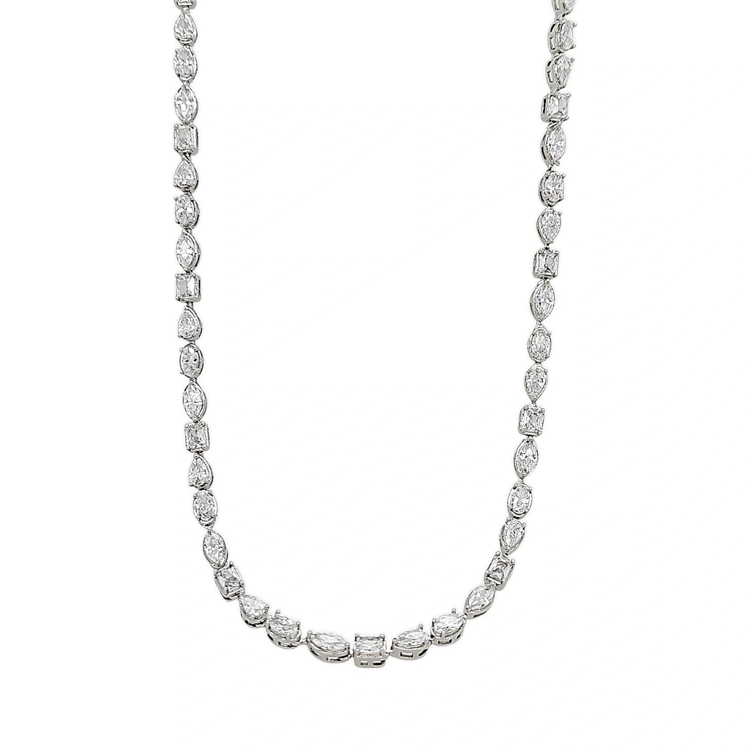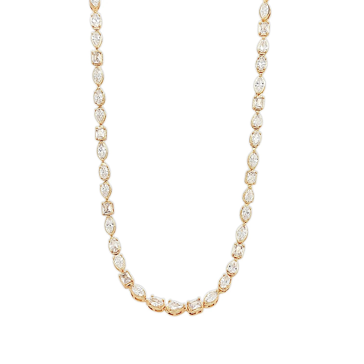 A refined take on the classic tennis necklace. The Necklace Destiny Dressy features an elegant sequence of mixed-cut cubic zirconia stones, combining pear, round, and emerald shapes in perfect harmony. Designed to elevate both your daily look and special occasion outfits, this piece delivers timeless brilliance and versatility.